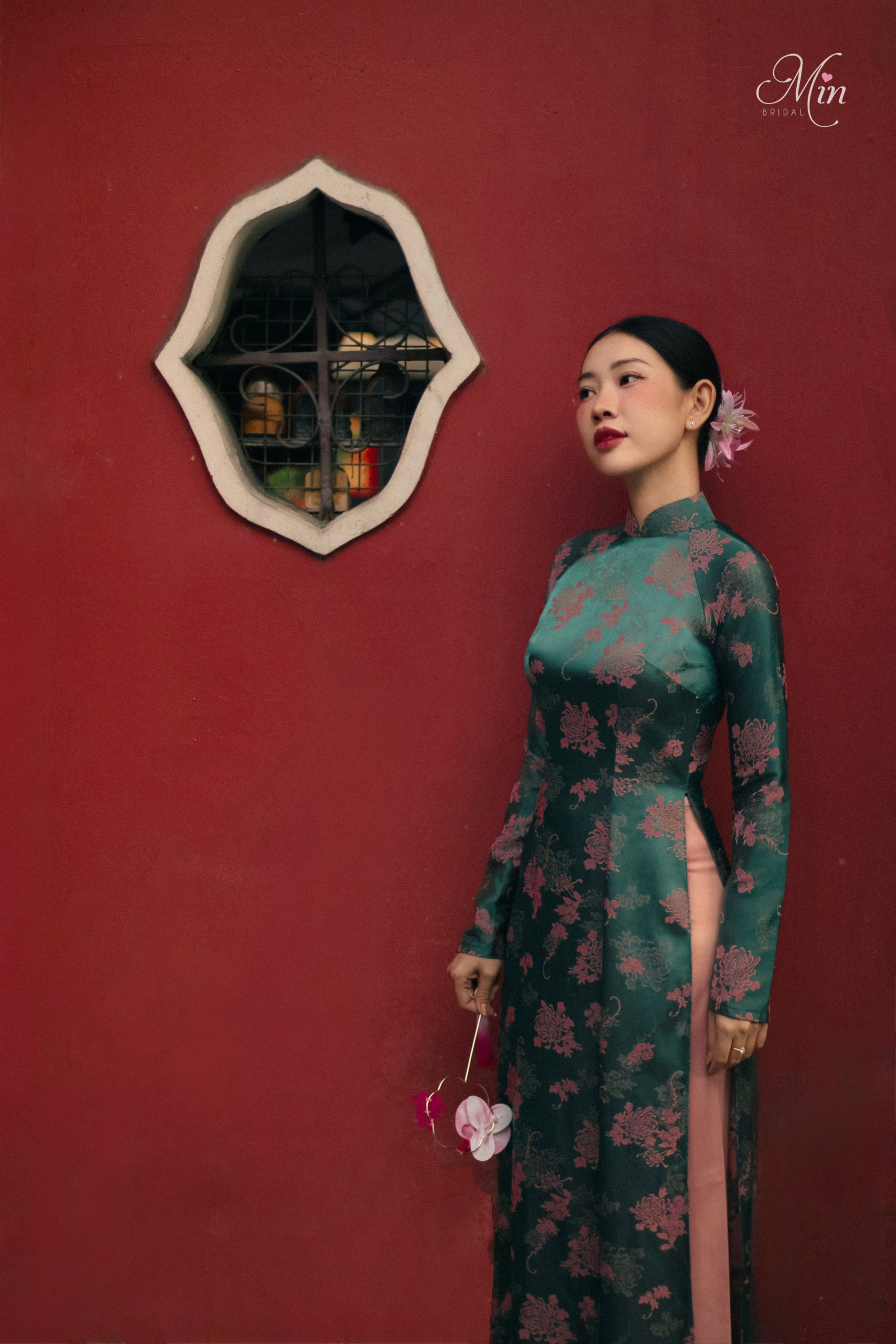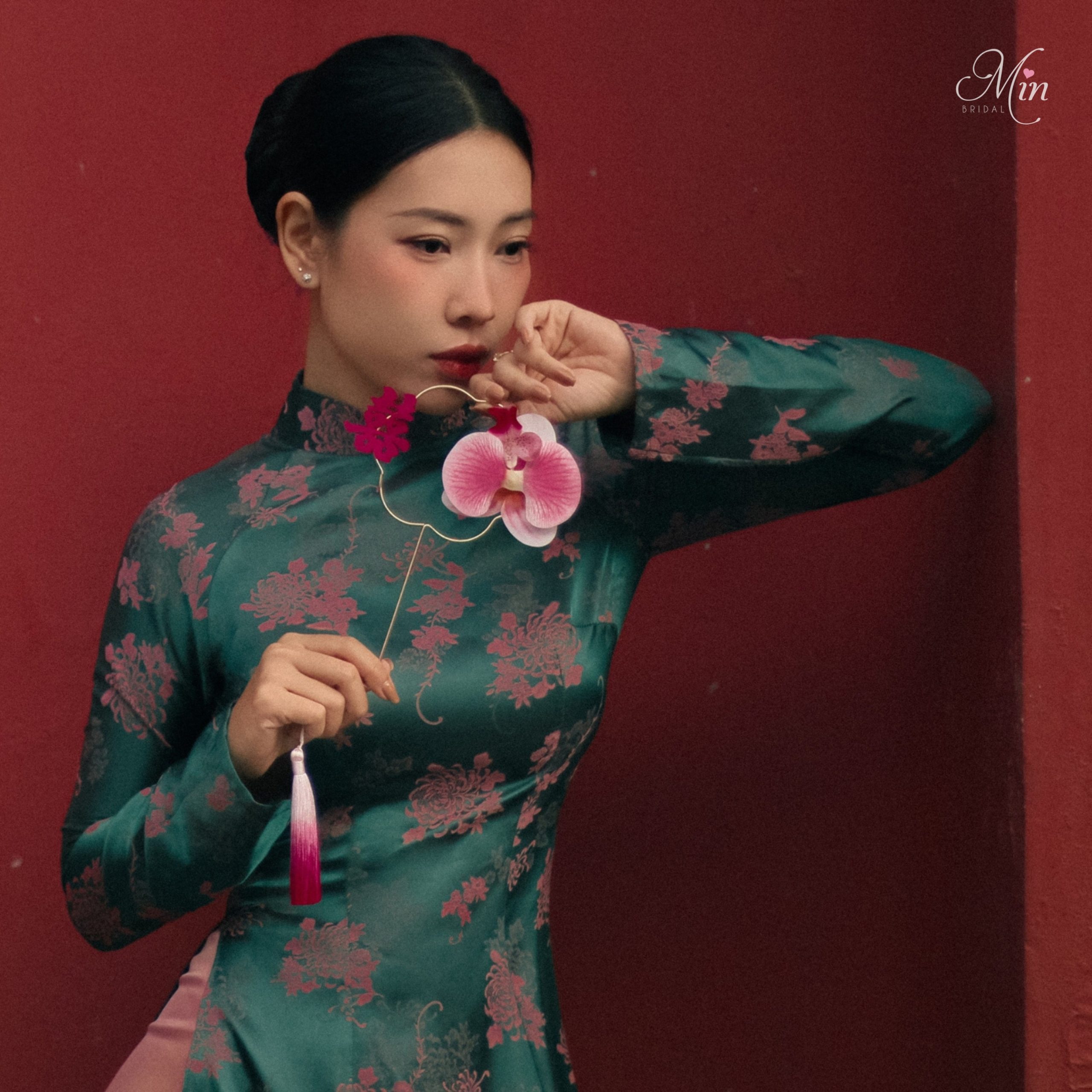 Áo Dài Gấm Đỏ Hoạ Tiết – ADCR 04