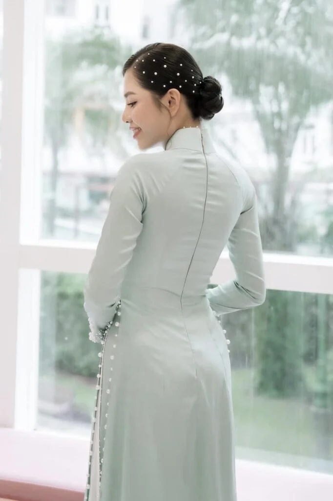 | Thiết kế | Đính Hoa Nổi, Đính Ngọc, May 2 lớp 4 tà rời, Ngọc Trai viền Áo |