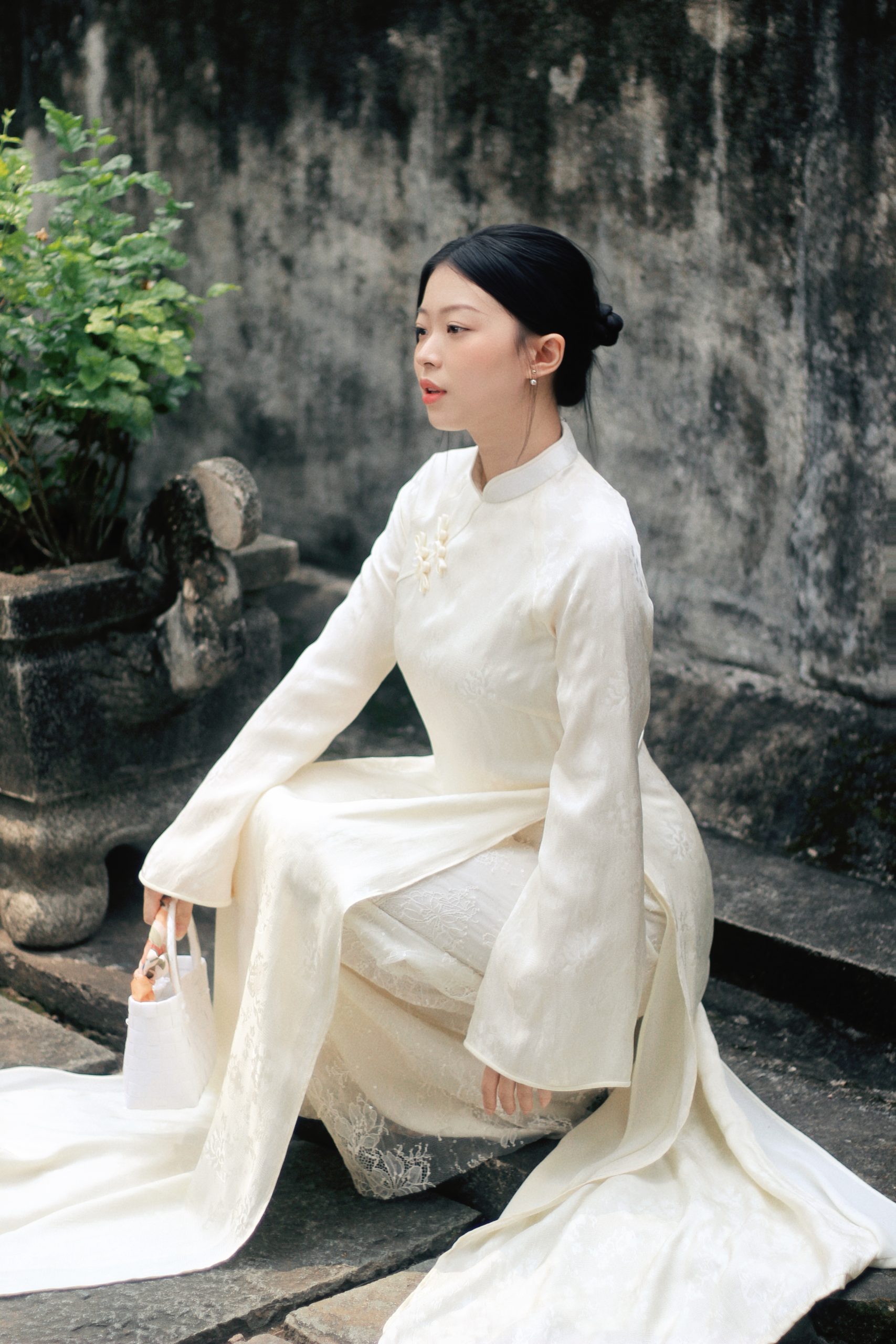 Áo Dài Lụa phối Ren – ADCD 07